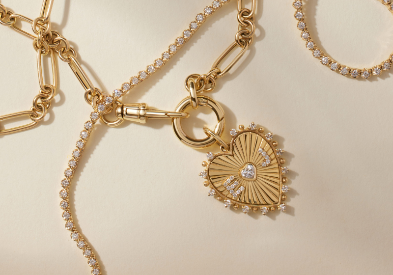 Add charm accents like a round diamond, heart, or cross to your chain