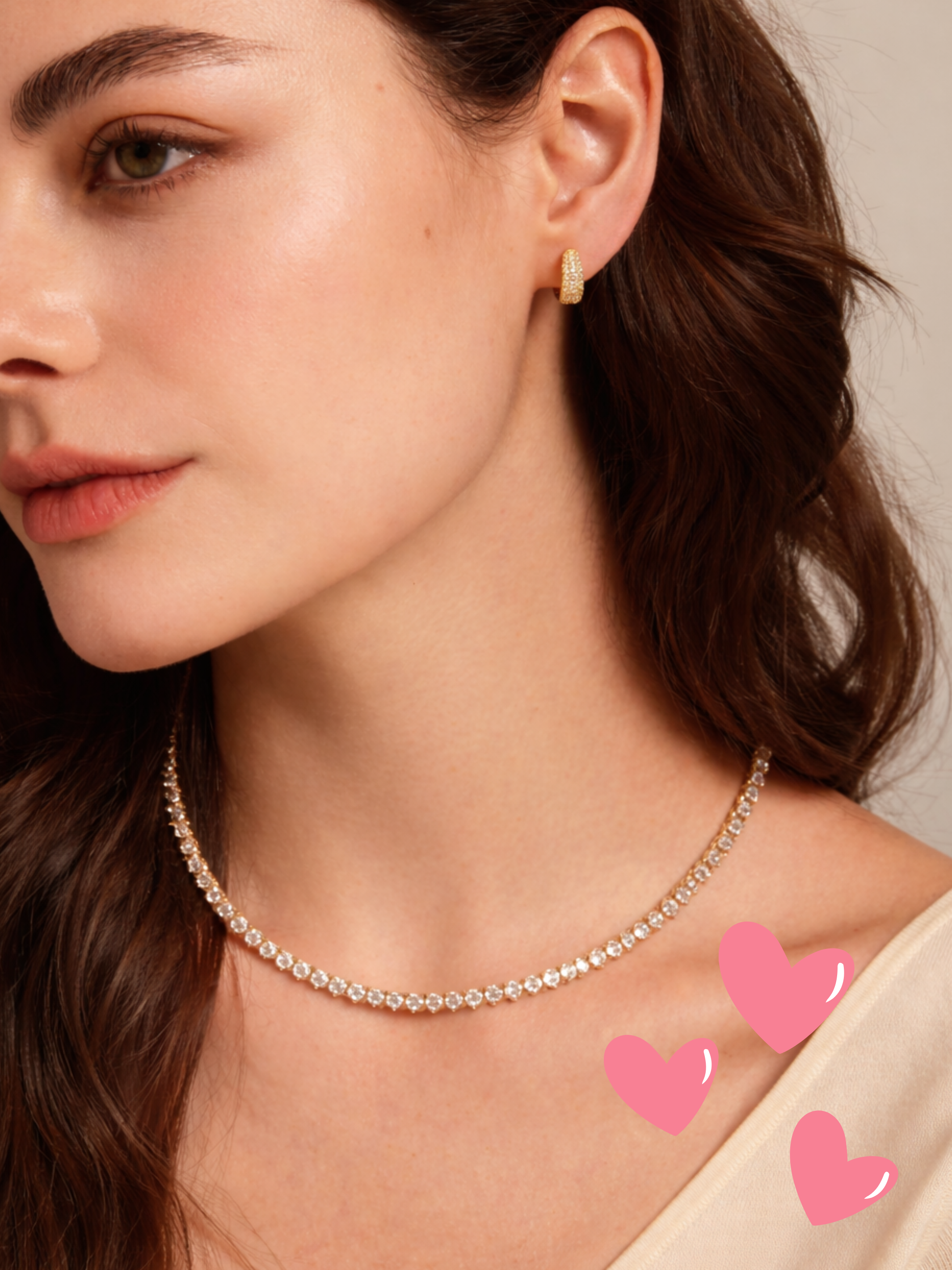 Made for candlelit dinners and late-night plans, the Date Night Set brings all the Valentine’s sparkle. Featuring our Brooklyn CZ Huggies and Graduated CZ Tennis Necklace, this duo delivers a bold, flirty glow that feels instantly special.