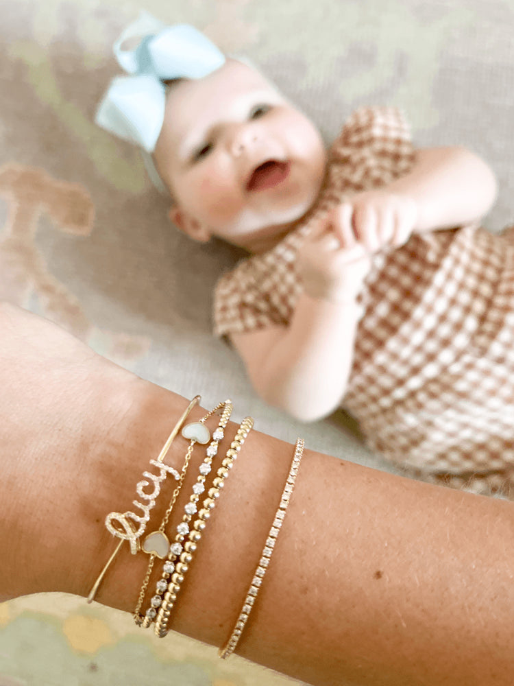 Our Initial Jewelry Collection presents a kaleidoscope of styles, from classic monogram pendants to contemporary initial rings. Delve into our collection to discover the pieces that mirror your personality and suit all occasions. Whether it's the simplicity of initials on a paper clip necklace or the sophistication of a dainty bracelet, you'll find the perfect piece to elevate your style.