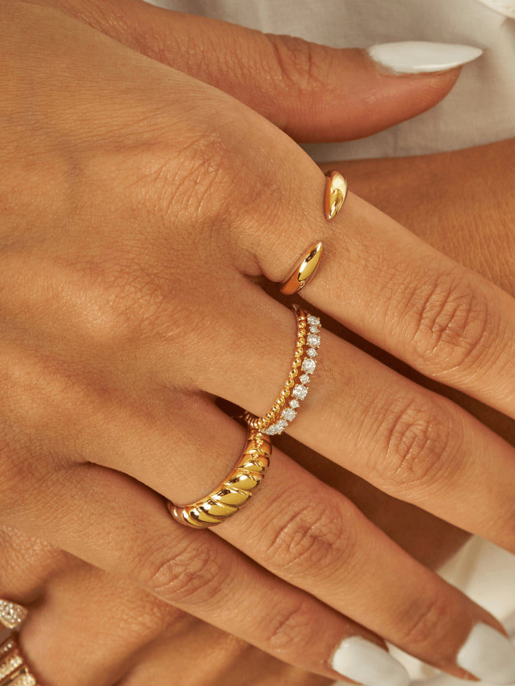 Elevate your look with our radiant gold rings. Crafted with precision and care, these pieces exude modern opulence. From intricate designs to bold, eye-catching styles, our rings are designed to make a lasting impression. Mix and match with your favorite gold jewelry for a personalized ensemble that's bound to turn heads. Create a bold ring stack with our diamond and gemstone rings, and let your style shine through.