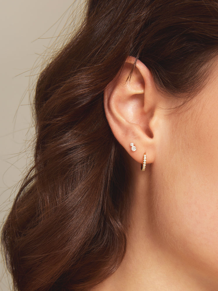 One of the joys of stud earrings is their versatility. You can effortlessly mix and match different stud designs with your birthstone earrings, for example, to create your signature look. Combine shapes, colors, and materials to express your unique style and personality. Want to add a touch of modern flair to your ensemble? Experiment with the exciting possibilities of mixing metals for a contemporary twist by pairing studs with our gold filled hoop earrings.