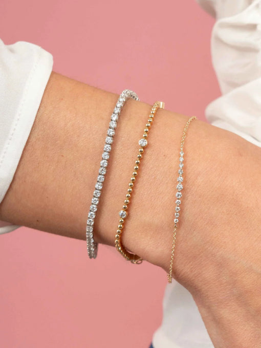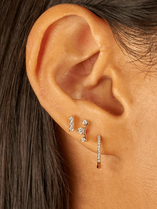 Add a touch of sparkle to your everyday ear stack with our Mini Diamond Bar Earrings. These earrings feature three small round diamonds beautifully set in 14K yellow, white, or rose gold. Perfect for those with multiple piercings, these studs bring subtle shine and elegance to any look.