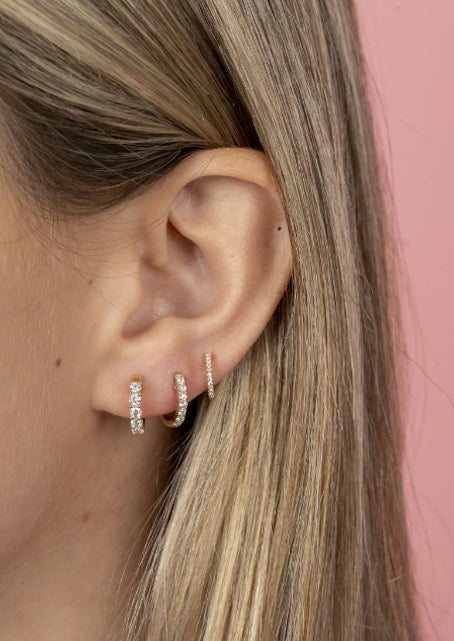 Our bestselling chunky diamond huggie earrings bring the sparkle with five .45ctw diamonds. If you'll looking for something fresh in a timeless silhouette these huggies are it.